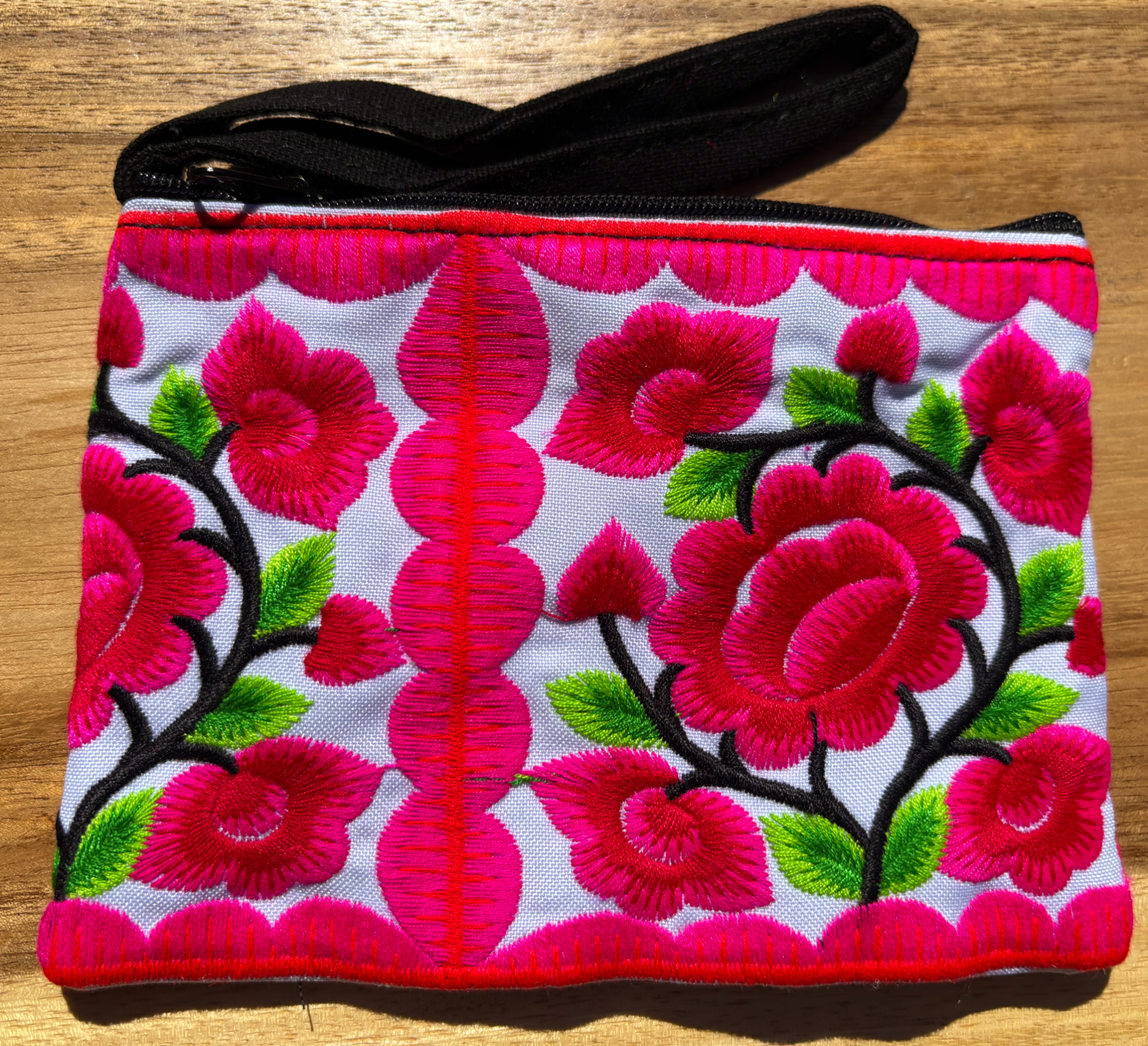 - Product Code: Pink / White Hmong Flower Embroidered Purse