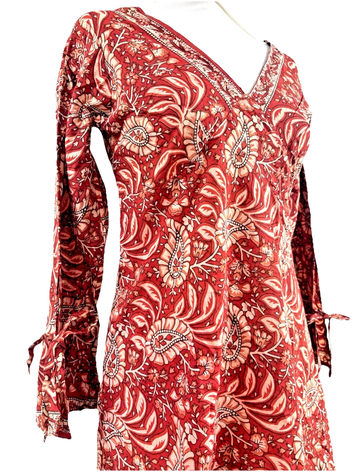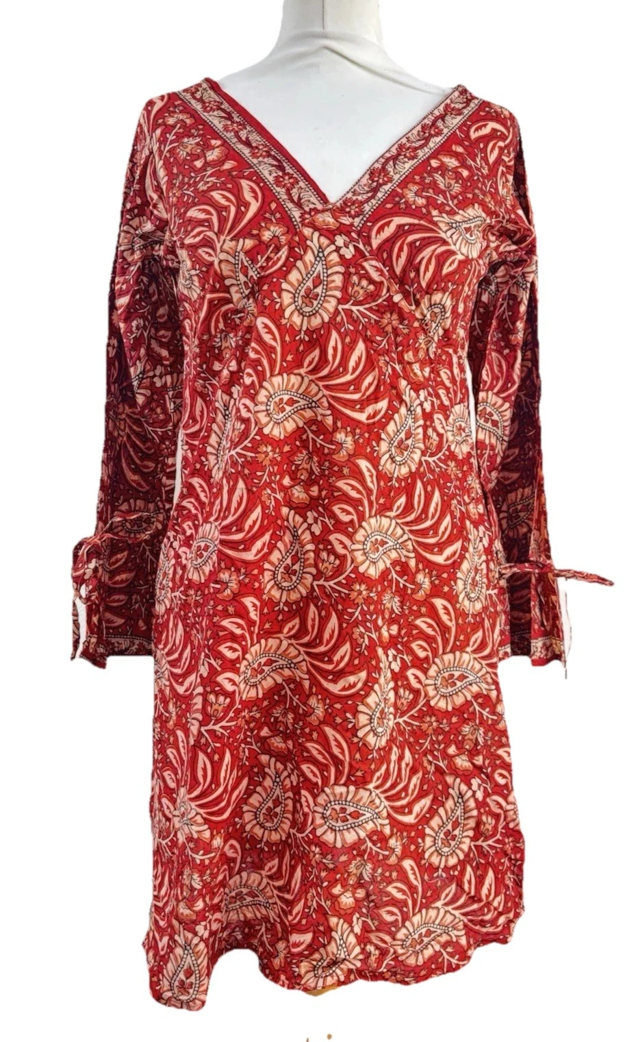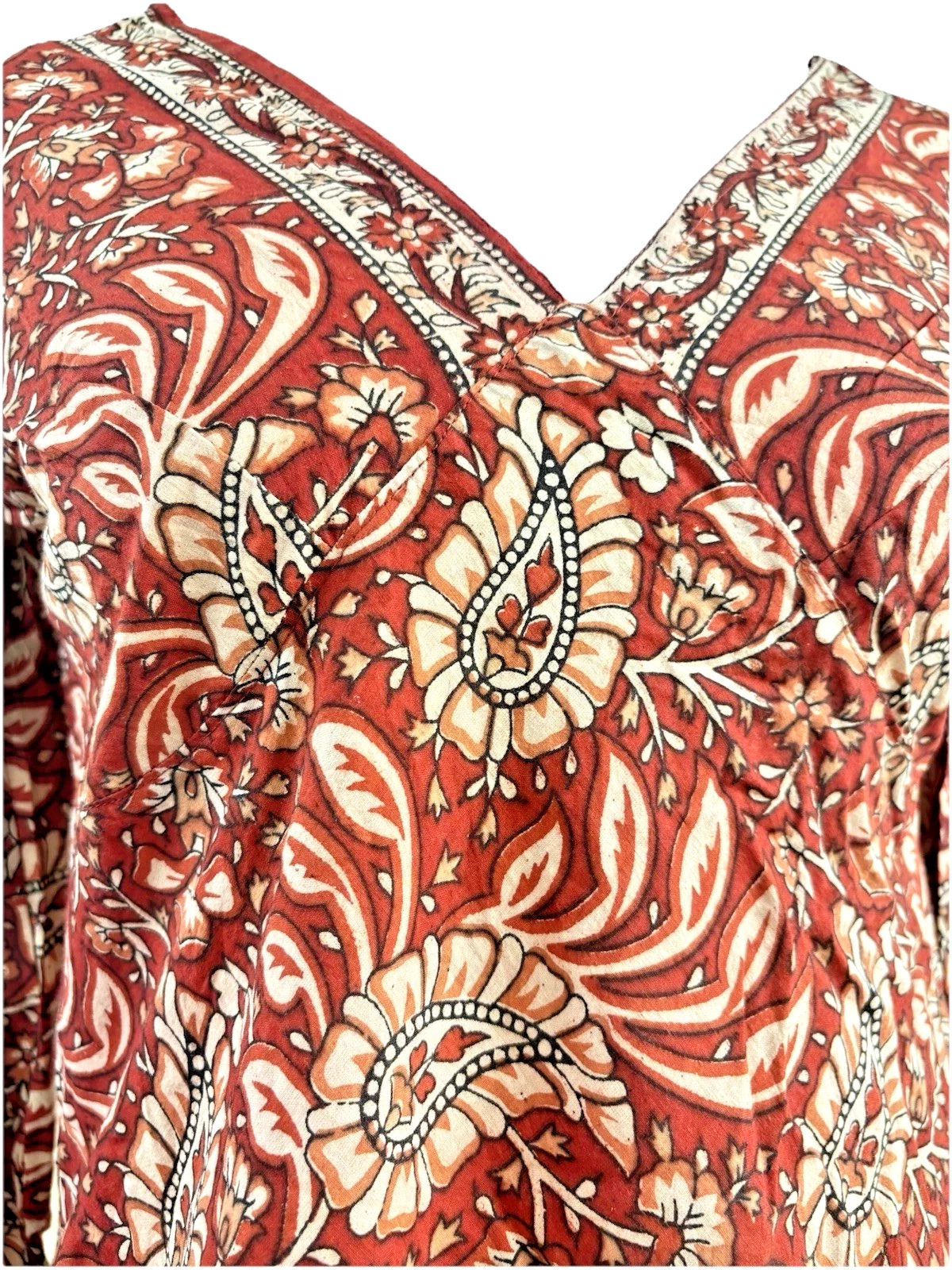 Paisley Print Kaftan Top Soft Indian Cotton Block Print Ruby Red Sizes 8 - 16