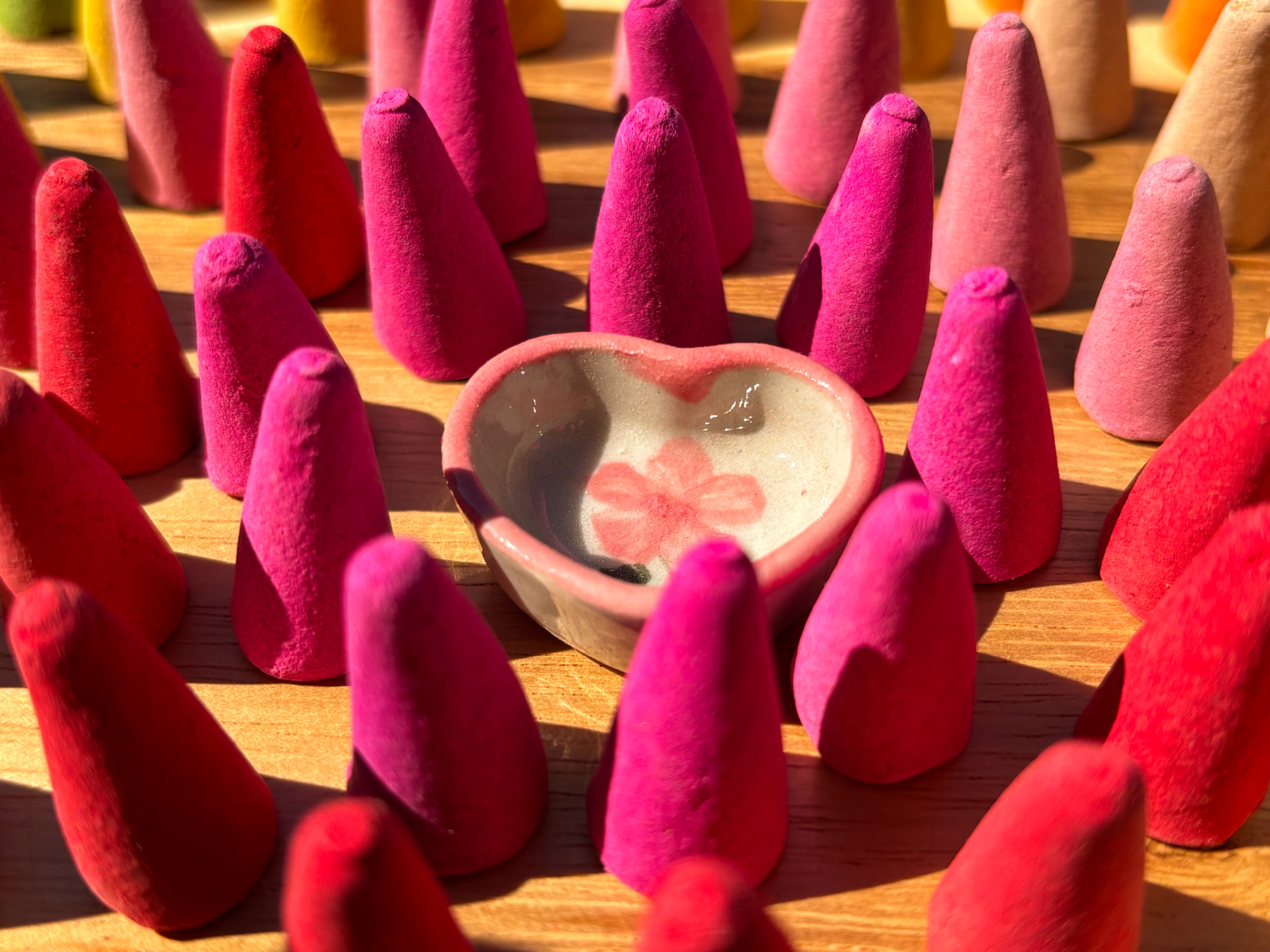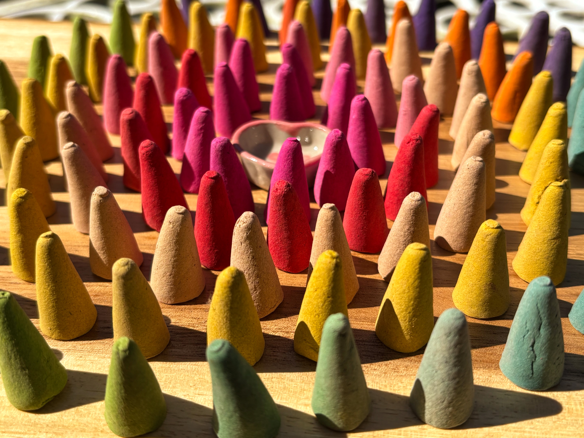 Because our incense is entirely natural you get a beautiful scent unlike many of the commercial incenses which merely spray their incense with perfume which smells great in the packet but not so good when it burns! Also with cones there is no burning stick to contaminate the incense.