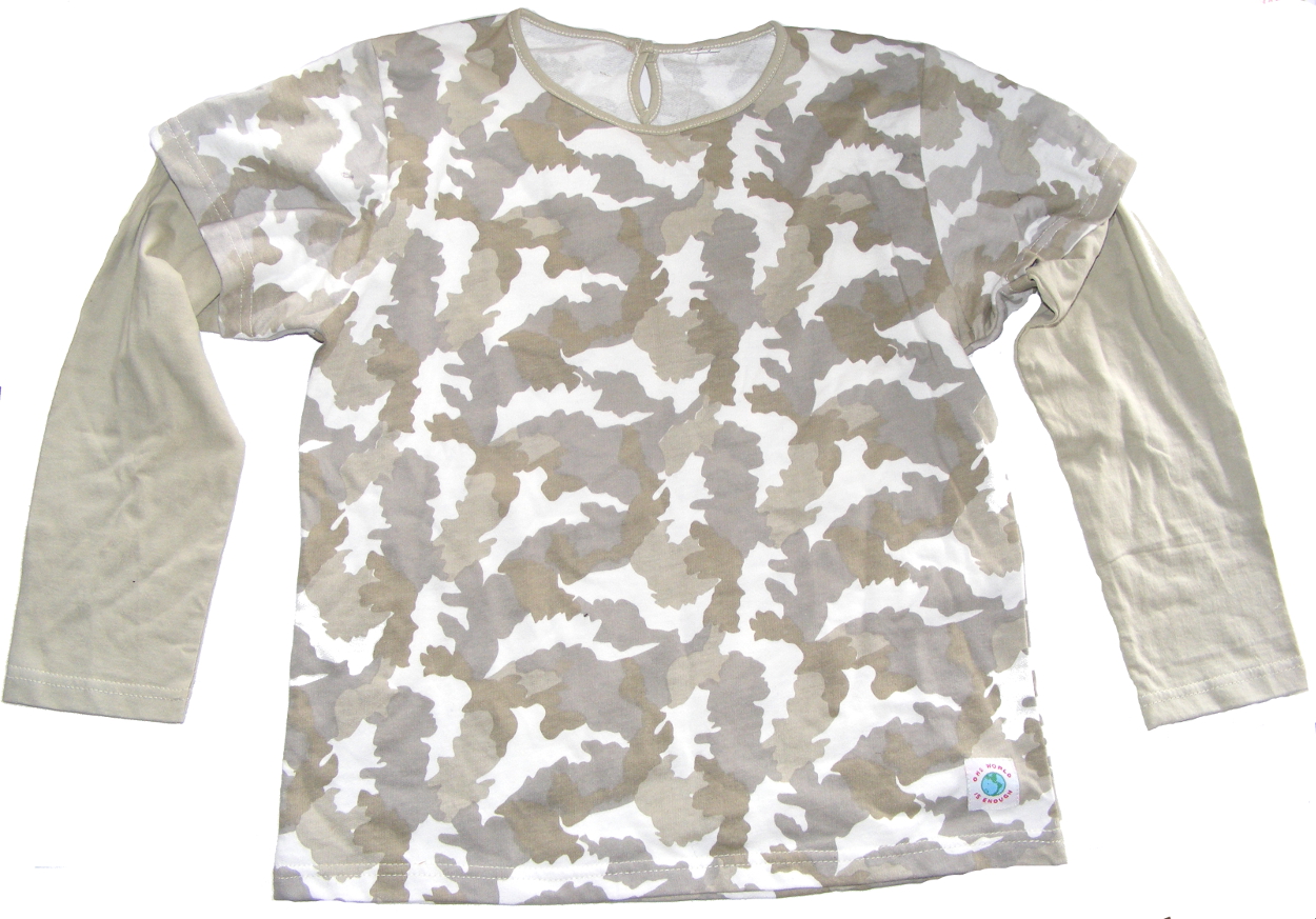 The fabric is a soft hard wearing cotton and our long sleeve T shirts come in five sizes from age 5 - 6 up to age 9 - 10. Our long sleeve camouflage T shirts are machine washable and should be washed on a 40 degree C wash with a colour powder. Line dry. 100 % cotton.